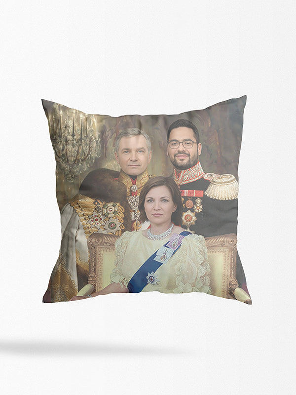 Purchase Your own royal portrait on a pillow† Our professional designers make the portrait based on your photo and chosen Royal Outfit. Within 48 hours you will receive the design for approval from us. Finally, your portrait will be printed and sent.