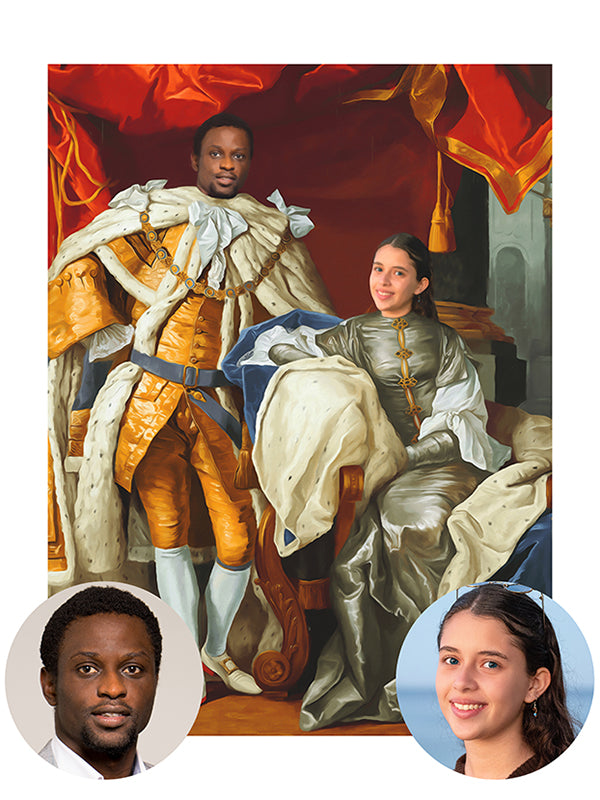 Compra Tu propio retrato real en una almohada. Nuestros diseñadores profesionales hacen el retrato basado en su foto y el atuendo real elegido. Dentro de 48 horas recibirá el diseño para su aprobación de nosotros. Finalmente, su retrato será impreso y enviado.