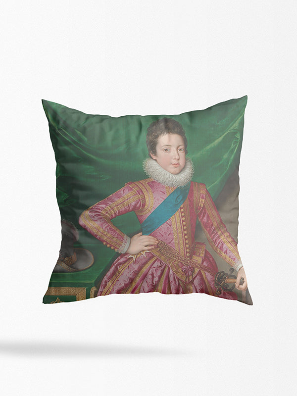 Compra Tu propio retrato real en una almohada. Nuestros diseñadores profesionales hacen el retrato basado en su foto y el atuendo real elegido. Dentro de 48 horas recibirá el diseño para su aprobación de nosotros. Finalmente, su retrato será impreso y enviado.