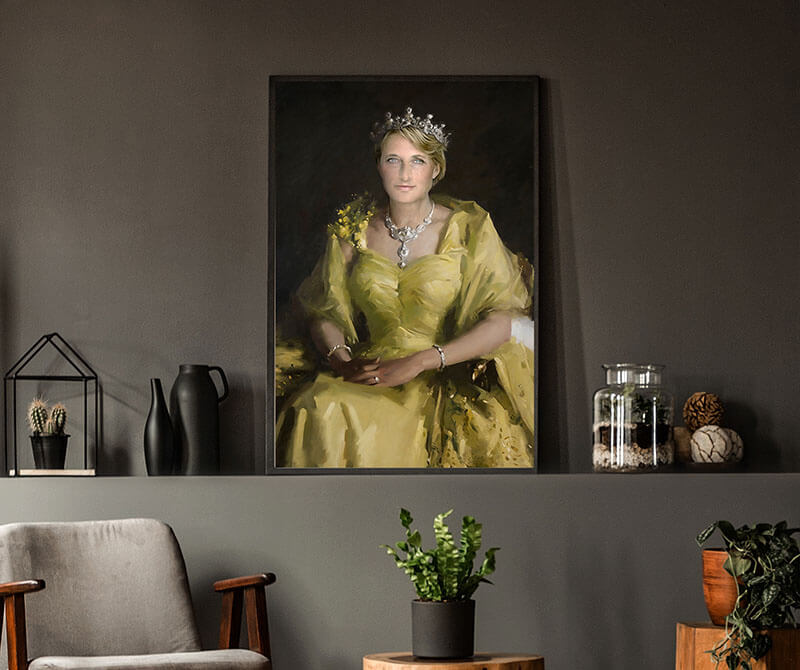 ¿Naces como rey o reina, pero extrañas una corona? ¿Sospechas que eres secretamente nobleza? Con un retrato real de ti en la pared, no hay nadie que aún duda eso.