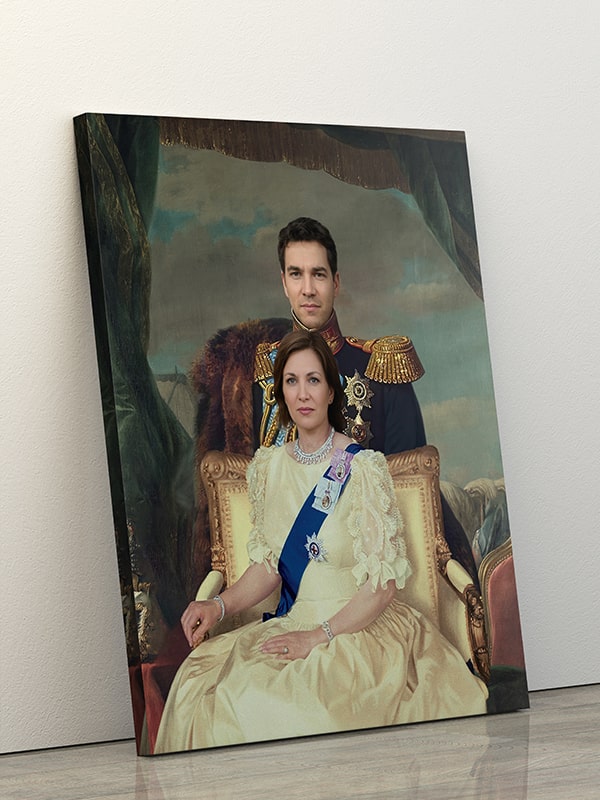 Compra Tu propio retrato real en lienzo. Nuestros diseñadores profesionales hacen el retrato basado en su foto y el atuendo real elegido. Dentro de 48 horas recibirá el diseño para su aprobación de nosotros. Finalmente, su retrato será impreso y enviado.