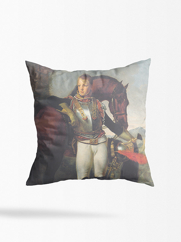 Compra Tu propio retrato real en una almohada. Nuestros diseñadores profesionales hacen el retrato basado en su foto y el atuendo real elegido. Dentro de 48 horas recibirá el diseño para su aprobación de nosotros. Finalmente, su retrato será impreso y enviado.
